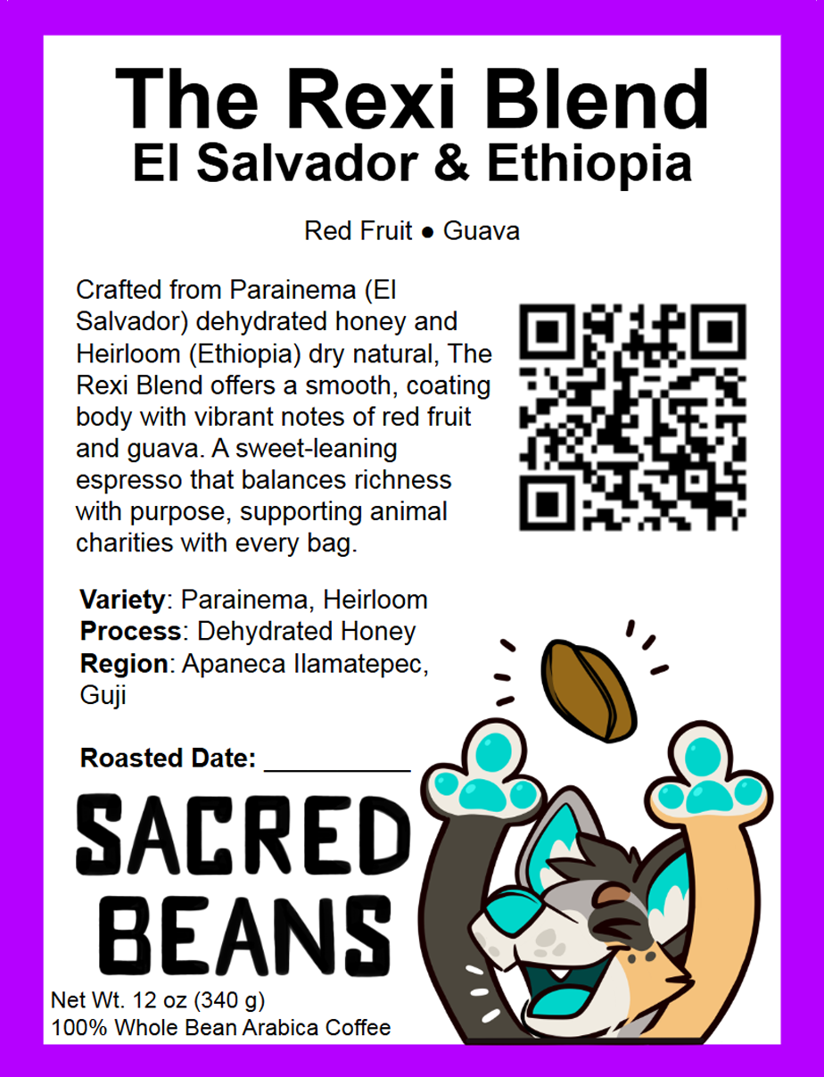 Crafted from Parainema (El Salvador) processed by the dehydrated honey method and Ethiopian Heirloom prepared as a dry natural, The Rexi Blend brings together two exceptional origins for a purpose beyond the cup. This espresso-focused blend highlights notes of ripe red fruit and tropical guava with a coating, smooth mouthfeel. Balanced toward sweetness over acidity, it delivers a rich, indulgent shot that resonates beautifully in both straight espresso and milk-based drinks.